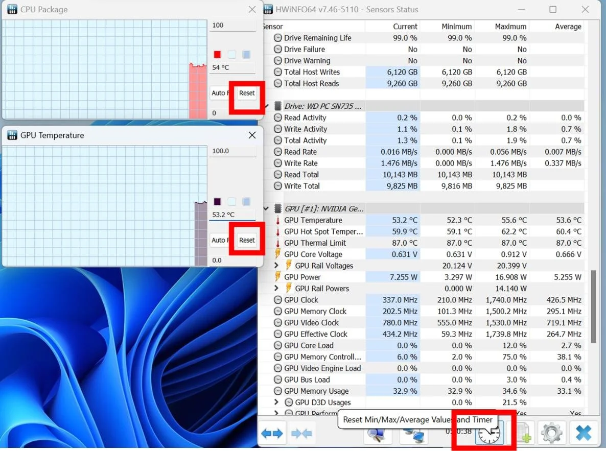 11. You can reset the timers in HWinFO on dashboard and graphs.