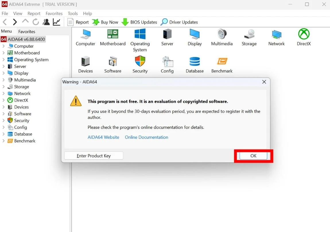 7. Open the installed AIDA64 software, which won't require a CD key to access.