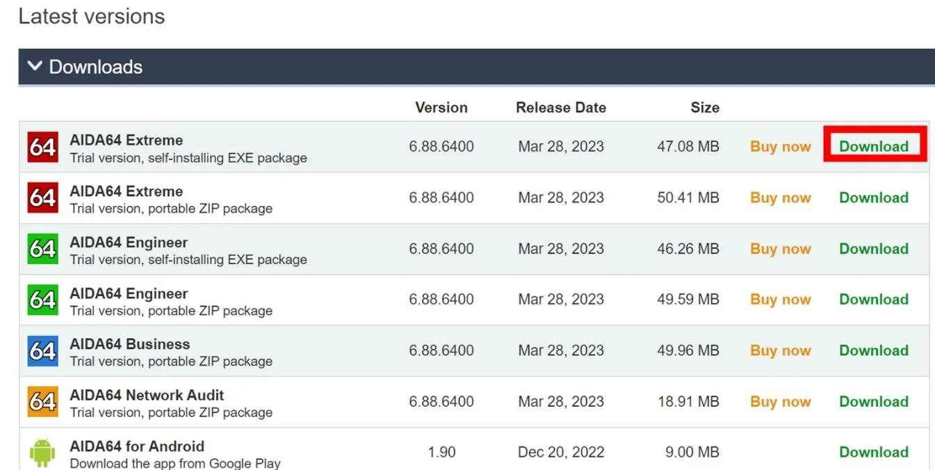 5. Download AIDA64 and ensure you get the most recent versions for complete functionality. (AIDA64 is not a free software. However, we can use free trial to meet our needs)