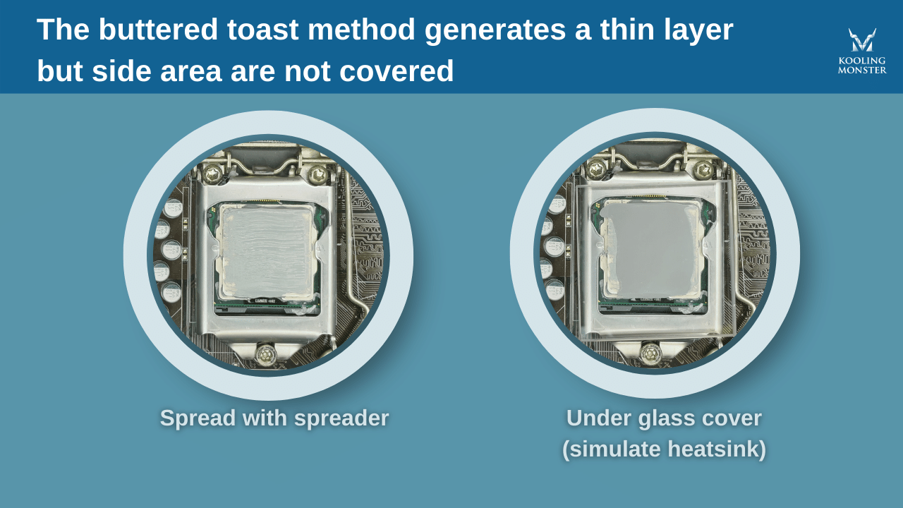 While the other application methods rely on the heatsink spreading the paste with pressure when reattached, the buttered toast method requires users to spread the paste with a spreader or spatula.
