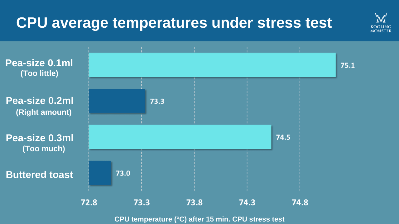 Furthermore, we found that having too much or too little thermal paste made more of an impact than how it was applied and greatly influenced the heat transferability.