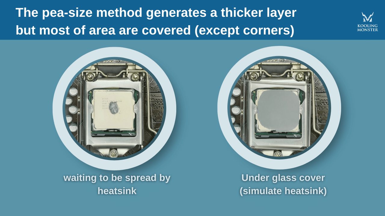 When it comes to thermal paste, the thinner it is spread, the better. With thin and even spreading, thermal paste is able to better transfer heat and keep the CPU temperature under control.