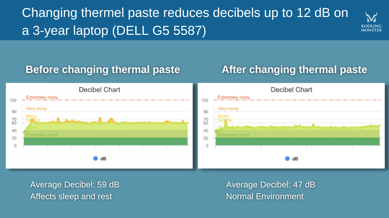 As shown by Kooling Monster’s case study, replacing a degraded thermal paste with a new one can massively decrease fan noise. This is made possible by the improved thermal performance of the PC with the new thermal paste.