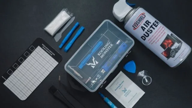 Kooling Monster KOMBO-01 contains all the things you need for the disassembling and cleaning process.